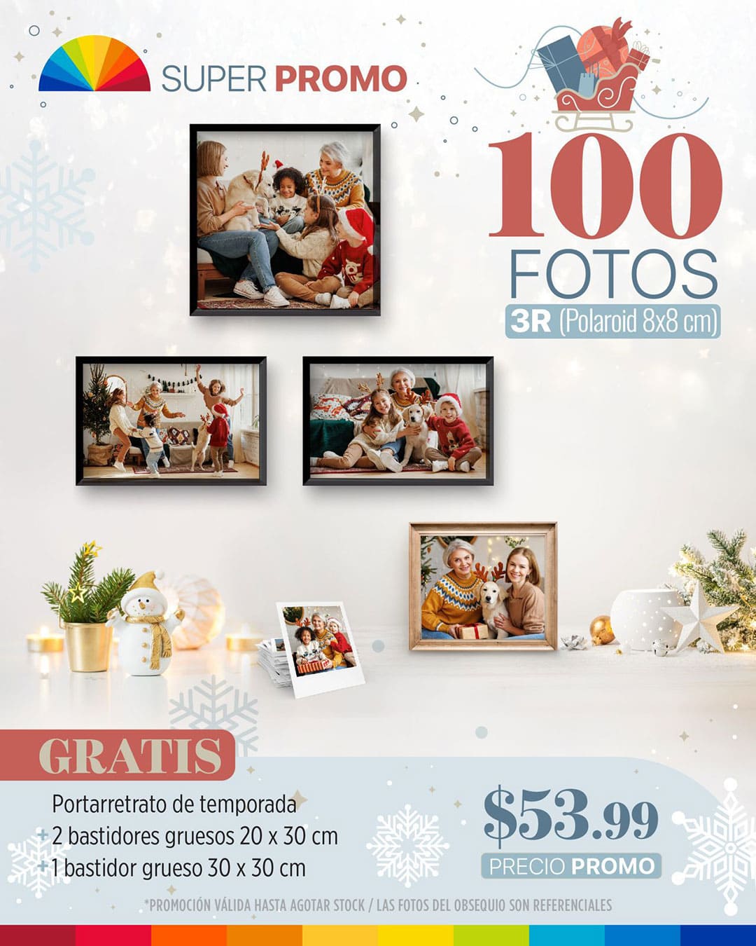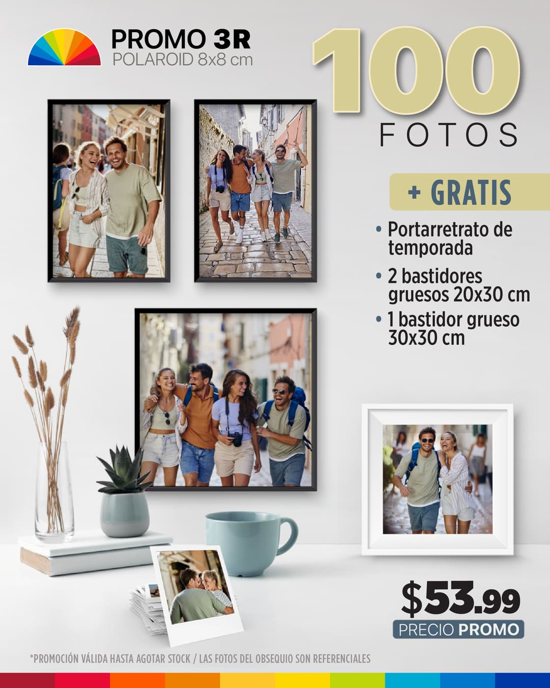 100 fotos 3R (Polaroid) Portarretrato de temporada + Combo de bastidores gruesos
