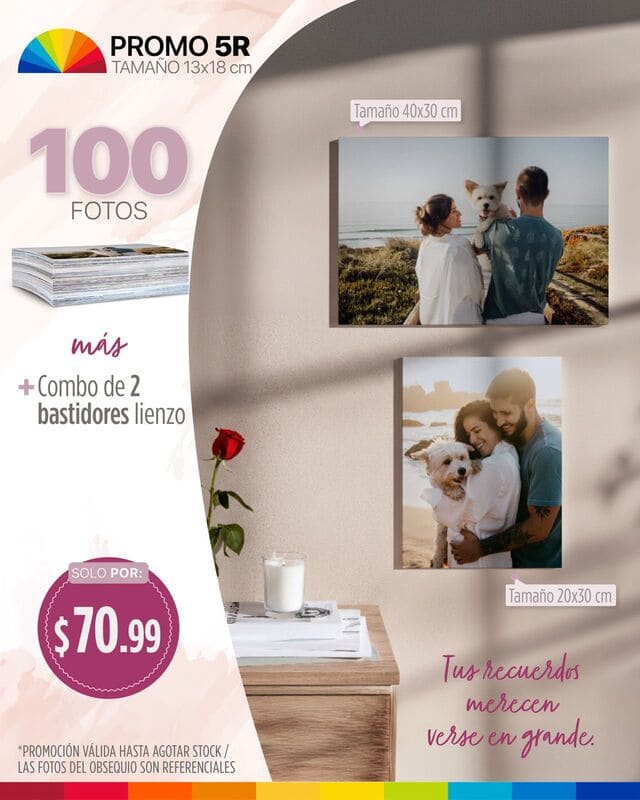 100 fotos 5R tamaño 13x18cm Combo de 2 bastidores lienzo