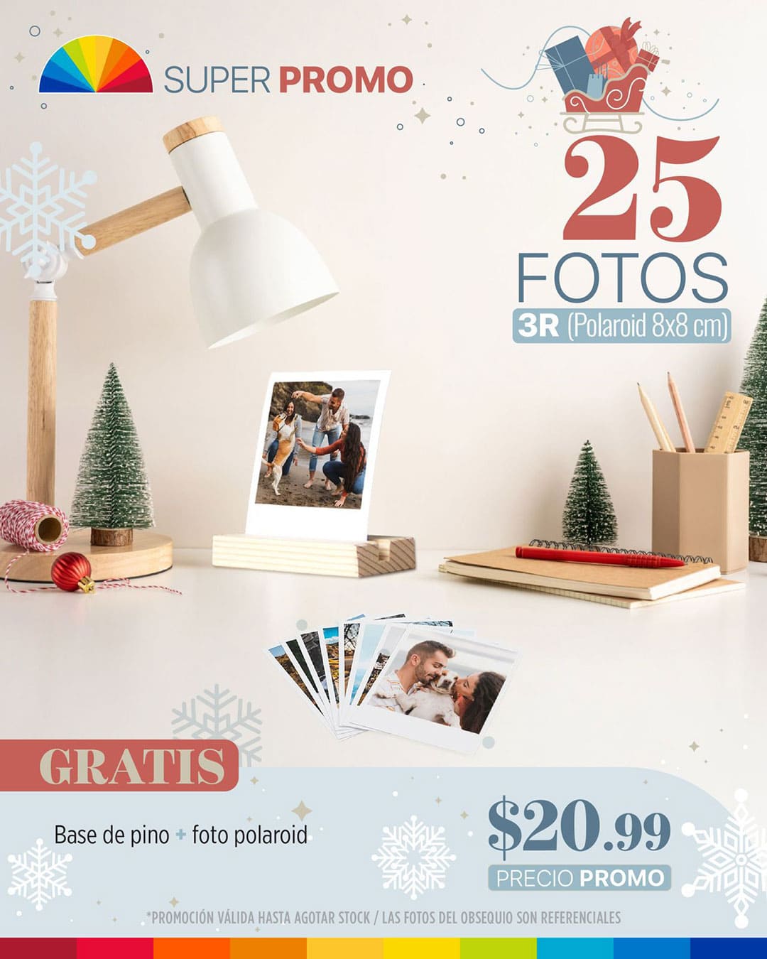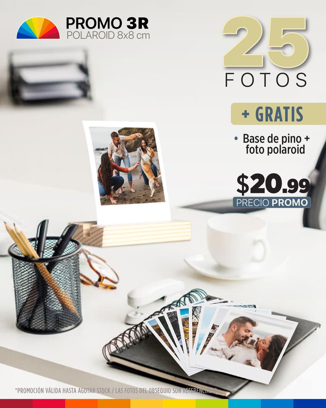 25 fotos 3R (polaroid) + Base pino + foto polaroid