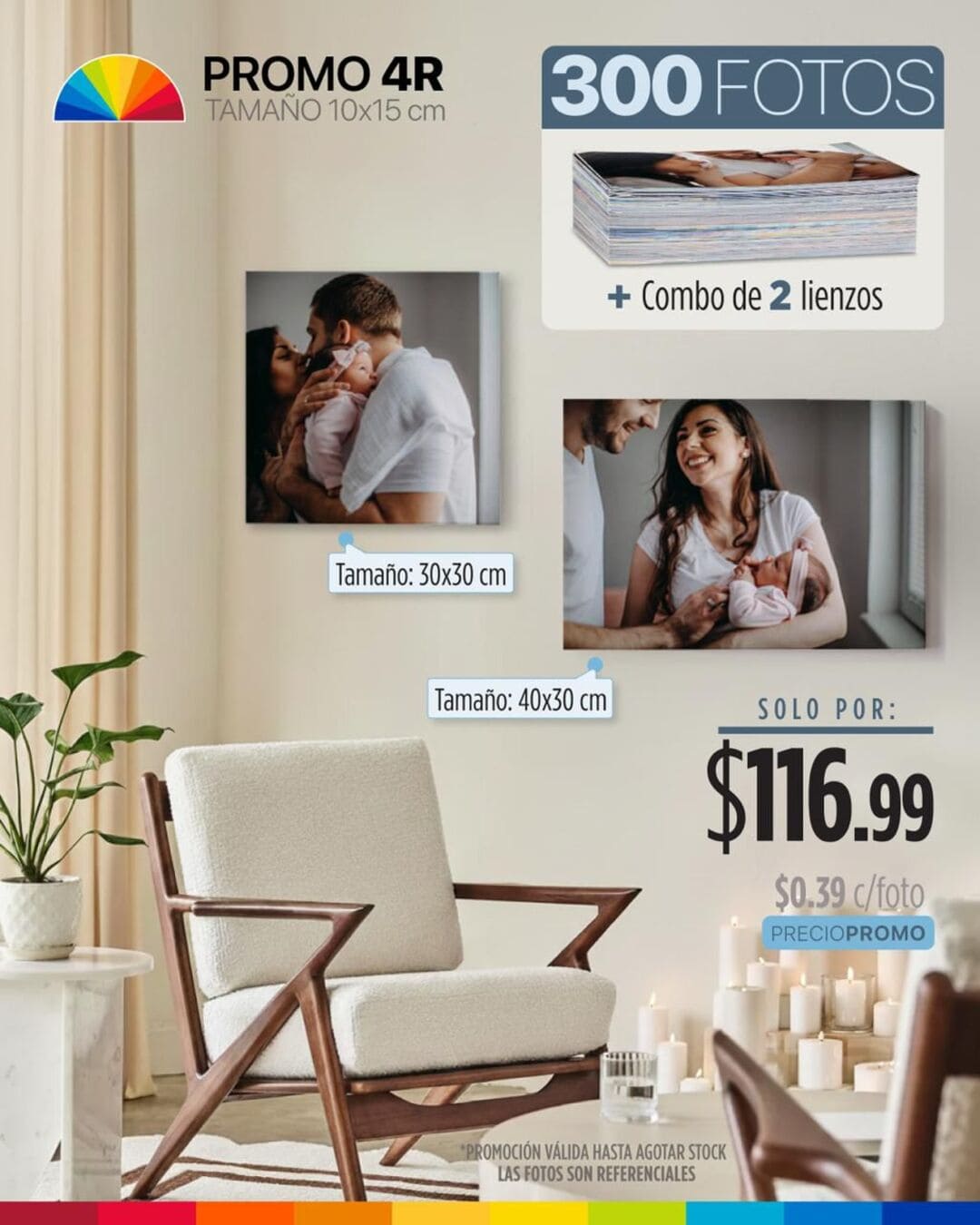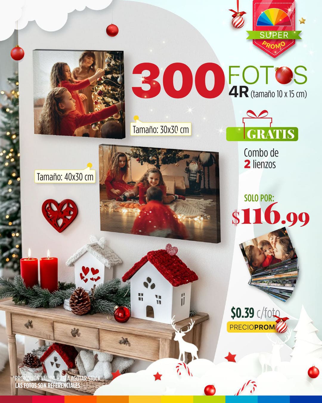 300 FOTOS 4R (tamaño 10x15cm) + combo de 2 lienzos