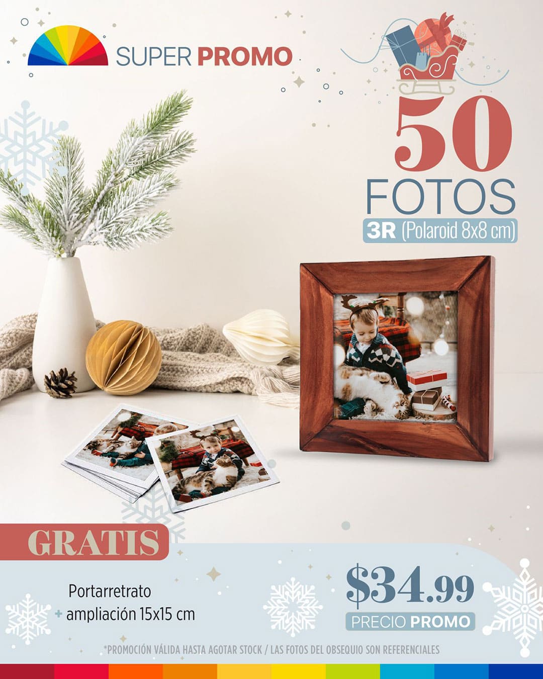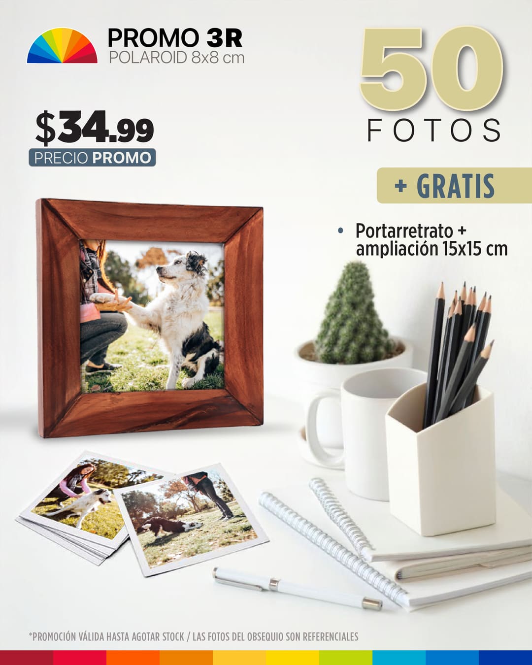 50 fotos 3R (polaroid) Gratis portarretrato + ampliación 15x15cm