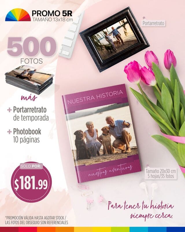 500 fotos 5R tamaño 13x18cm + Portarretrato + Photobook
